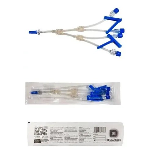 O Equipo de Infusão Multivias com Clamp Descarpack é um dispositivo multiplicador de acesso venoso, desenvolvido para permitir a conexão simultânea de duas ou quatro vias de infusão parenteral ao acesso venoso. O Equipo Multivias está disponível nas versões com duas ou quatro vias distais, todas com clamp corta fluxo.