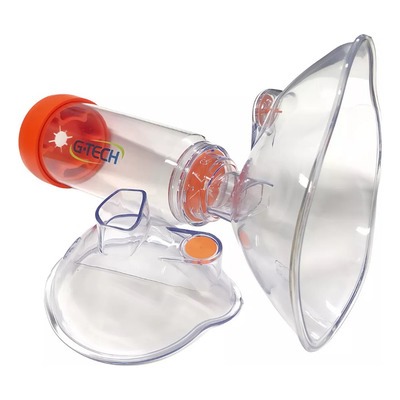 Os espaçadores G-Tech são compatível com todos os dispensadores de medicamento aerossol. Com máscaras extramacias e válvula dupla (no tubo e máscara), ajudam a vedar totalmente o ambiente externo, mantendo a retenção máxima do medicamento.