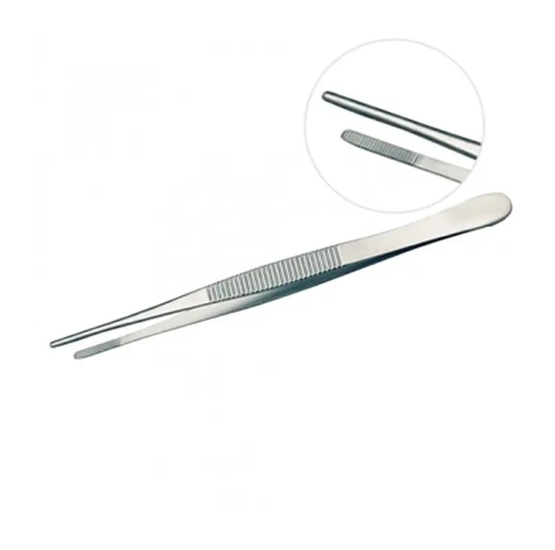 A pinça anatômica serrilhada 3mm 14cm é um instrumento cirúrgico de dissecção, não articulado, feito de aço inoxidável cirúrgico, usado para manusear tecidos moles com precisão sem causar dilaceração