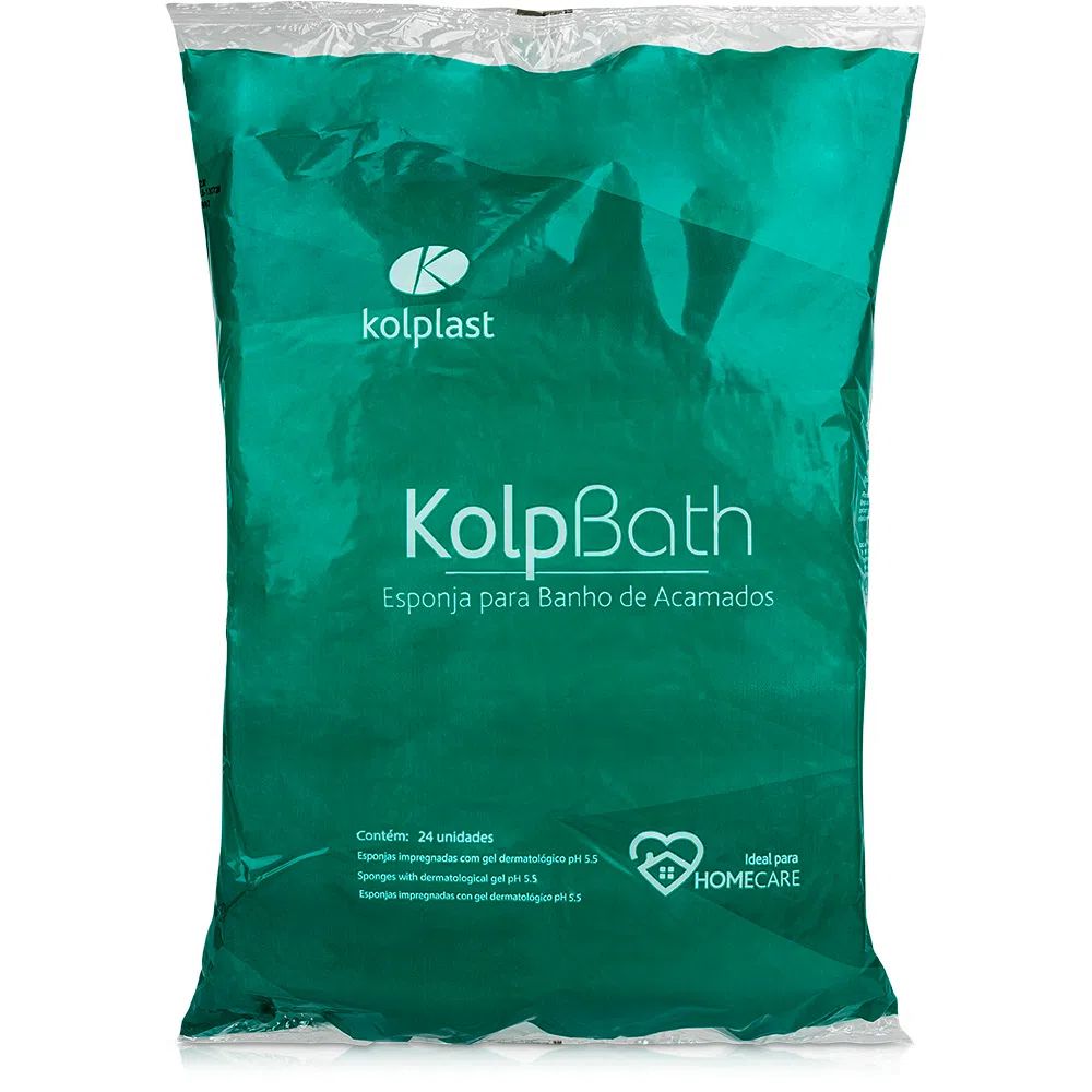 Esponja Kolpbath permite o banho de paciente acamado (banho no leito) ou com limitações de locomoção. Saturada com gel dermatológico próprio para a higienização. Quatro esponjas são suficientes para o banho: uma para a região genitoanal e outra para o restante do corpo. Cada unidade mede aproximadamente 18cm x 12cm.
